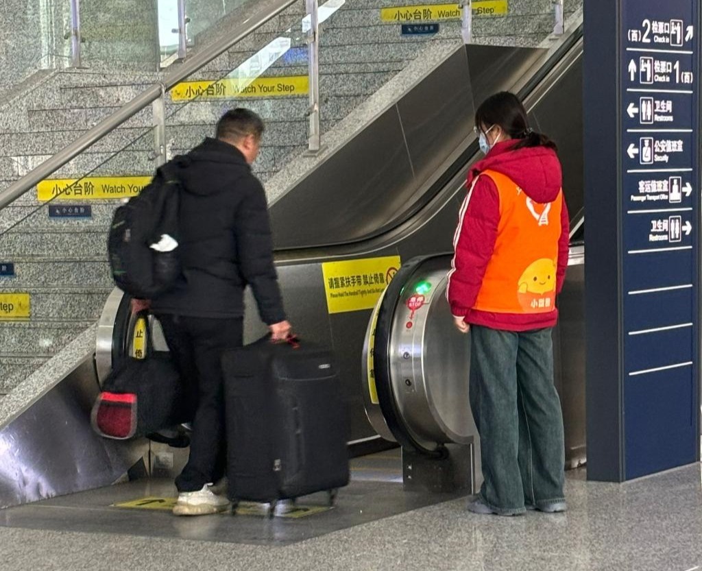 面对春运高峰期的挑战,志愿者们用真诚与耐心化解难题。在自助售票机旁,团队成员同学帮助一对老年夫妇操作购票系统时,发现他们对电子支付存在顾虑,便主动垫付现金并耐心讲解线上支付的安全性。“穿上志愿者马甲,我们就是家乡的‘门面’”。参与服务的2024级新能源材料与器件专业员工说,“看到旅客们顺利踏上归途,听到一声声‘谢谢’,我深刻体会到青年服务社会的价值”。